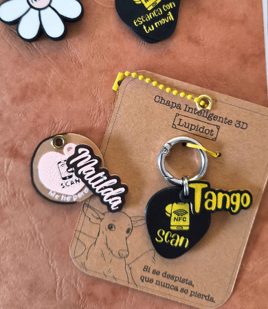 Diseña ahora la chapa NFC de tu mejor amigo: bonita, resistente y lista para conectarte al instante con quien la encuentre.